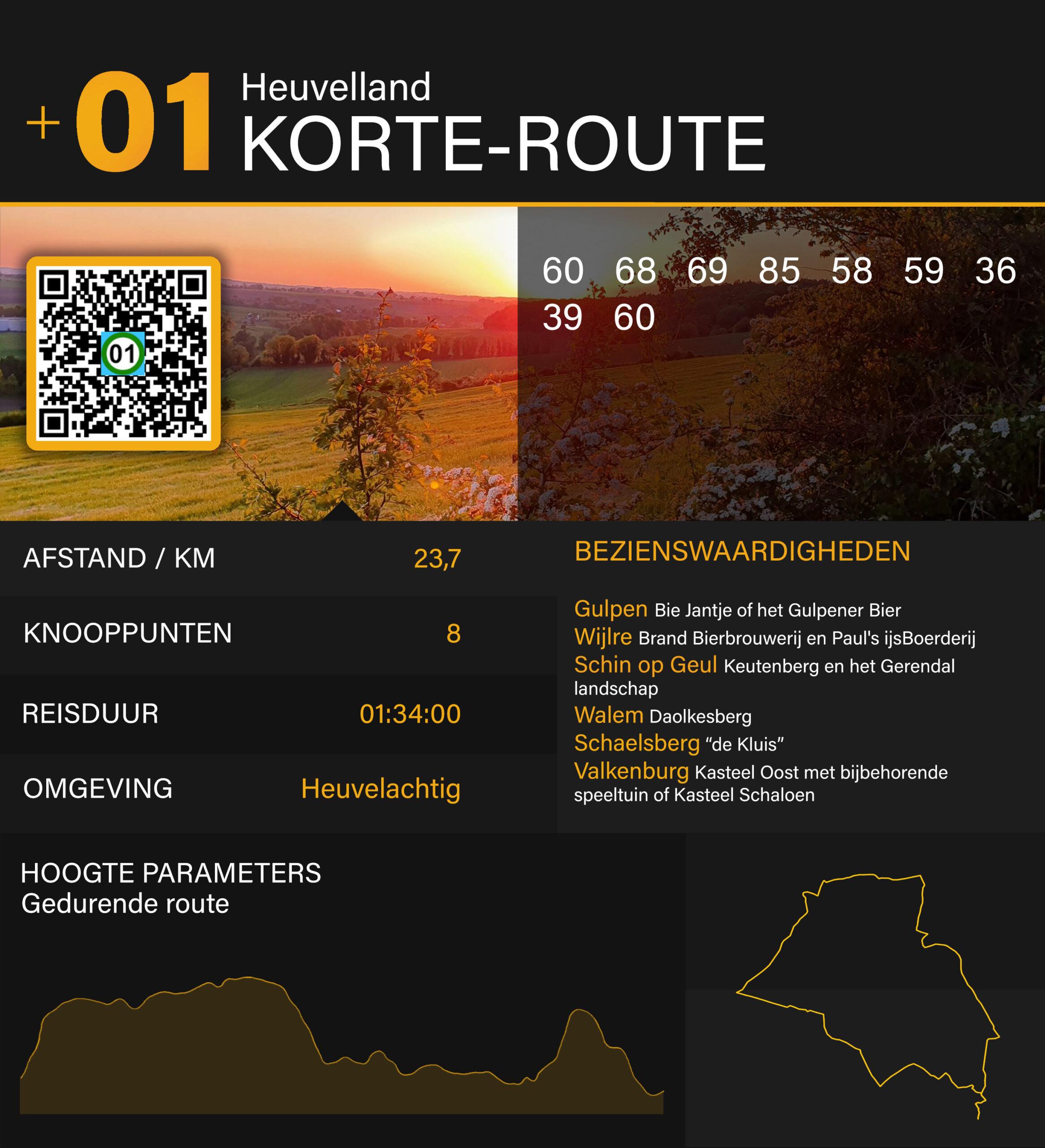 Vanaf hier gaat de route verder via Gulpen, Wijlre en Schin op Geul terug naar Valkenburg. Onderweg genoeg mooie plekken om nog even te stoppen of te genieten van het uitzicht.