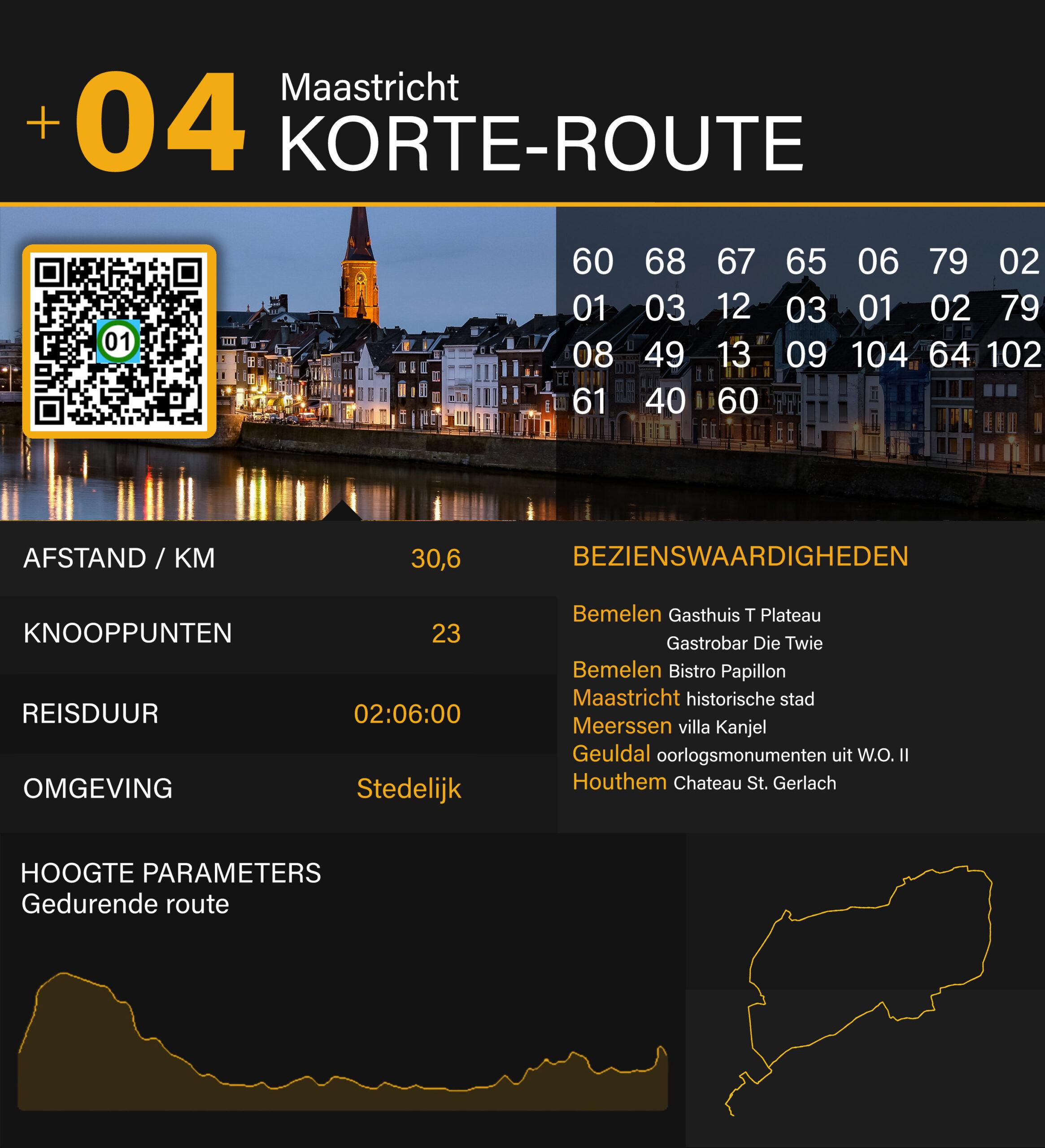 Daarna gaat de route richting het hart van Maastricht. Let op: laat je E-bike hier niet zomaar ergens staan. Maak gebruik van de gratis, bewaakte fietsenstallingen, zodat je zorgeloos door de gezellige straatjes van Maastricht kunt slenteren. De stad barst van de leuke winkels, terrasjes en historische plekken – ideaal voor een korte tussenstop.