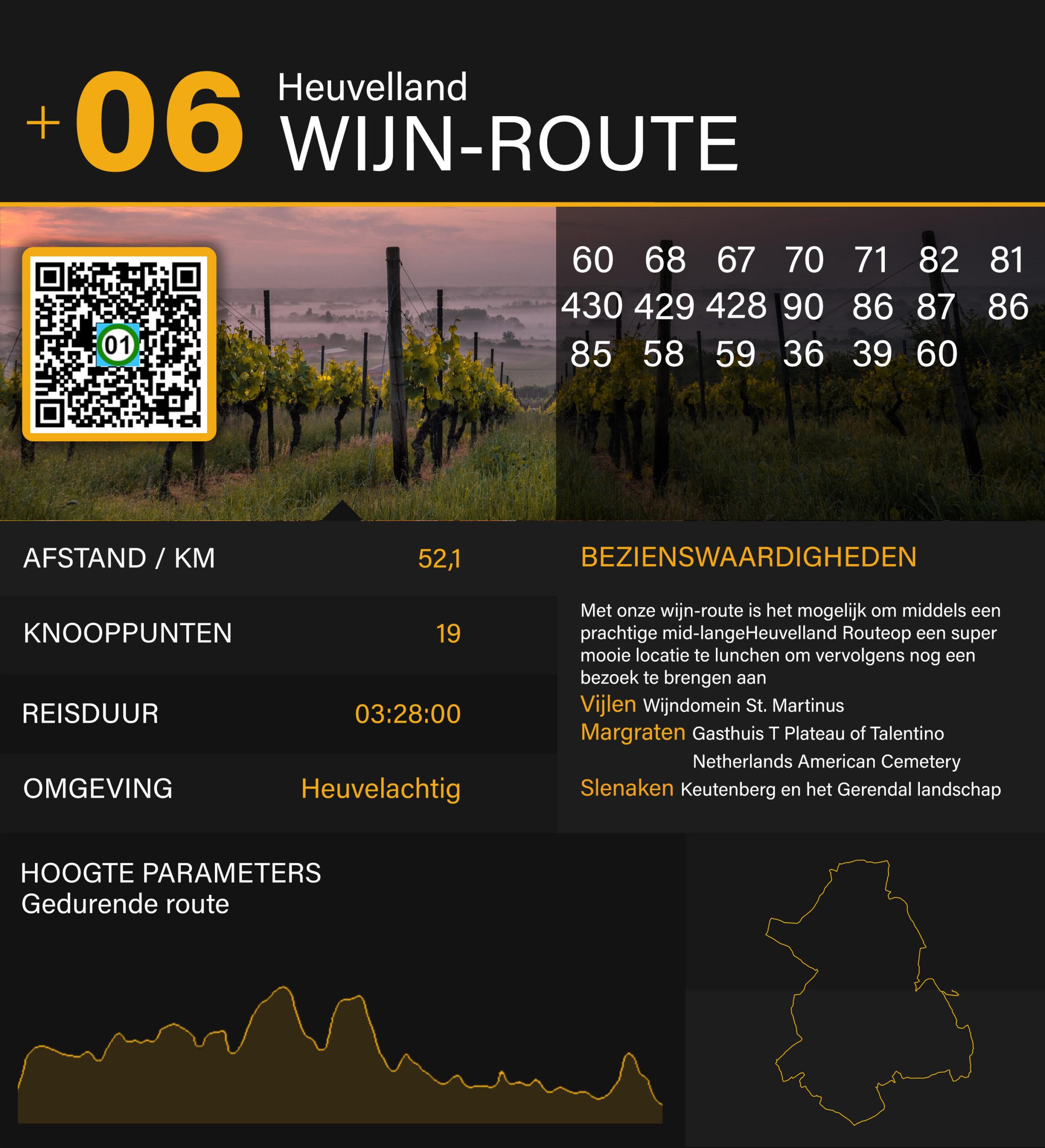 Deze wijnroute voert u door het prachtige Limburgse Heuvelland en biedt onderweg de mogelijkheid om te genieten van de mooiste wijndomeinen en culinaire stops. Start uw fietstocht en maak onderweg een tussenstop voor een heerlijke lunch bij Wijndomein Dhunes. Het wijndomein heeft een gezellige wijnbar en restaurant, waar u kunt genieten van een lekkere lunch met uitzicht over de wijngaarden en de omliggende natuur.
